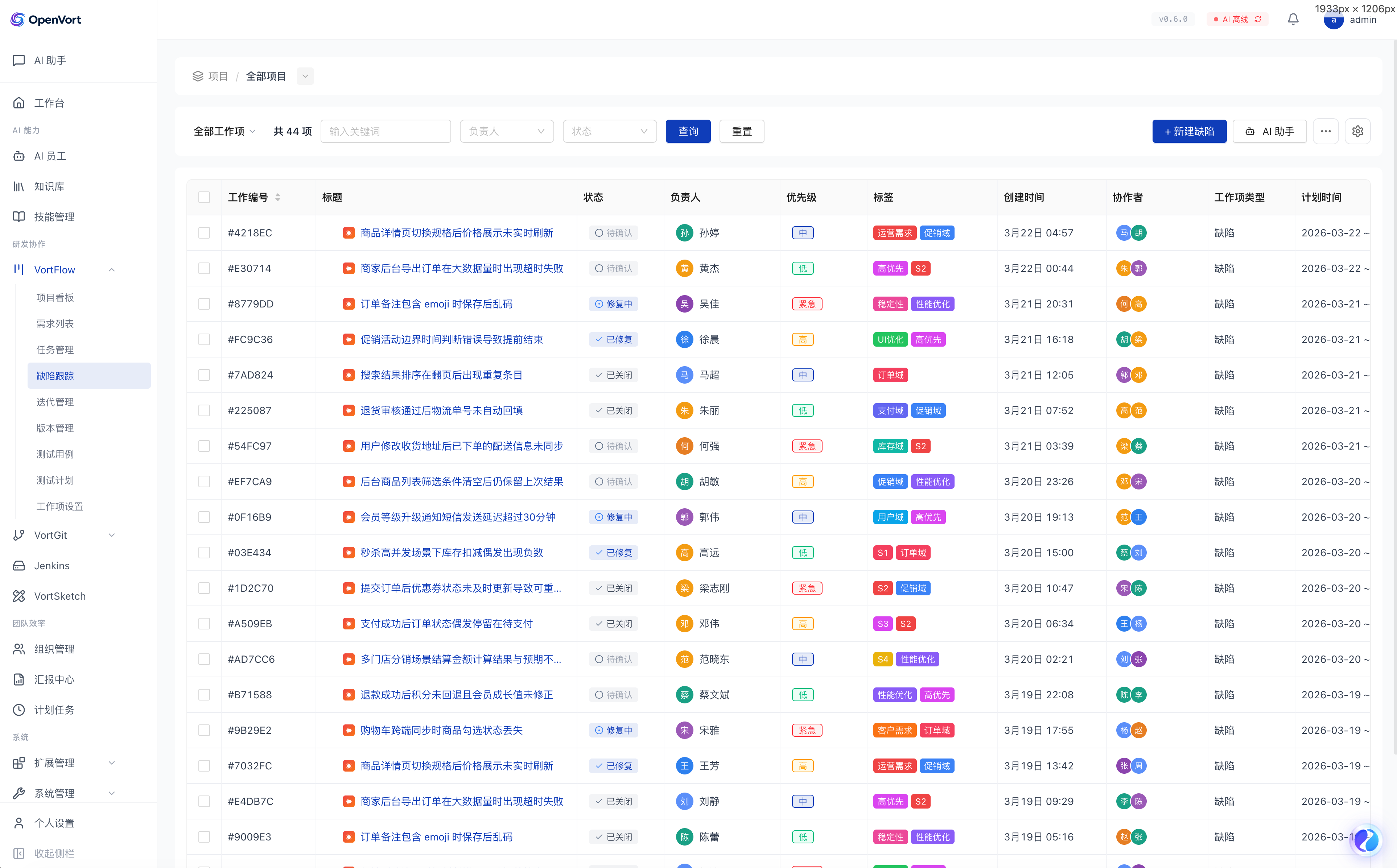 VortFlow 是 OpenVort 内置的 AI 驱动敏捷研发管理引擎,覆盖需求、任务、缺陷全生命周期。